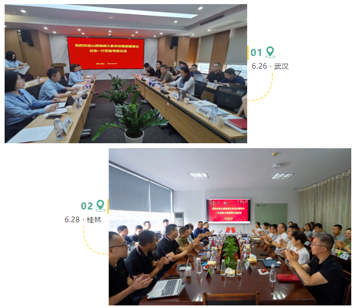 2023年是集团“管理年”,总部高管团队积极外出学习,主动和同行沟通交流,取长补短提升管理水平。6月26日至30日,山西问鼎网页版登录入口农牧股份有限公司执行董事长吕浩带领大象猪业、新大象养殖、饲料产业高管,前往武汉金龙、桂林力源、贵港扬翔、钦州园丰学习交流。